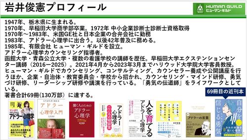 おはようございます。アドラー心理学に基づく勇気づけの研修(外部研修も)とカウンセリングを行う ヒュ.ーマン・ギルド の岩井俊憲です。間もなくgooブログから正式に引っ越してきます。こんな人間です。どうぞよろしく。 ****************…