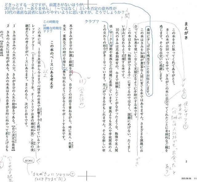 私が自らパソコンに向かって作成した「まえがき」「あとがき」は、骨格の部分では変更することがなかったのですが、かなり手を入れられていました。