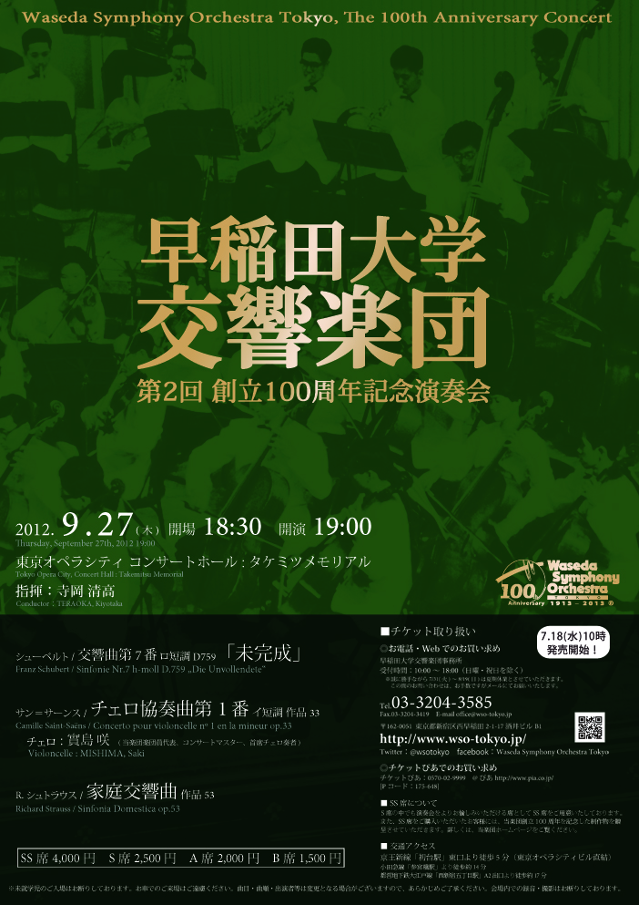 ◆全5回の「早稲田大学交響楽団創立100周年記念演奏会」開催に関する情報は こちら