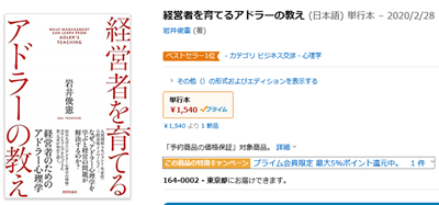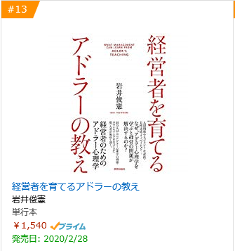 本日の『経営者を育てるアドラーの教え』のAmazonランキングですが、